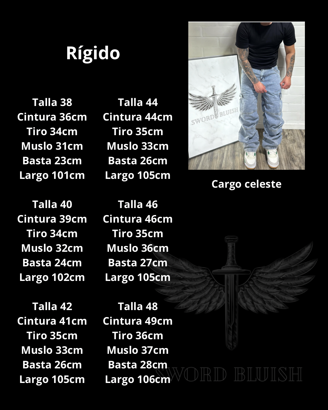 Mezclilla rígida, Tallaje normal.