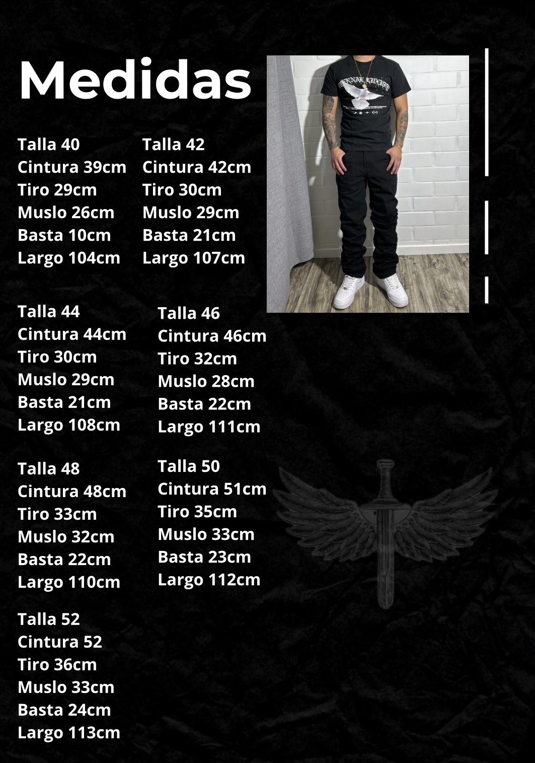 Mezclilla Rígida, tallas normales guiarse por medidas.